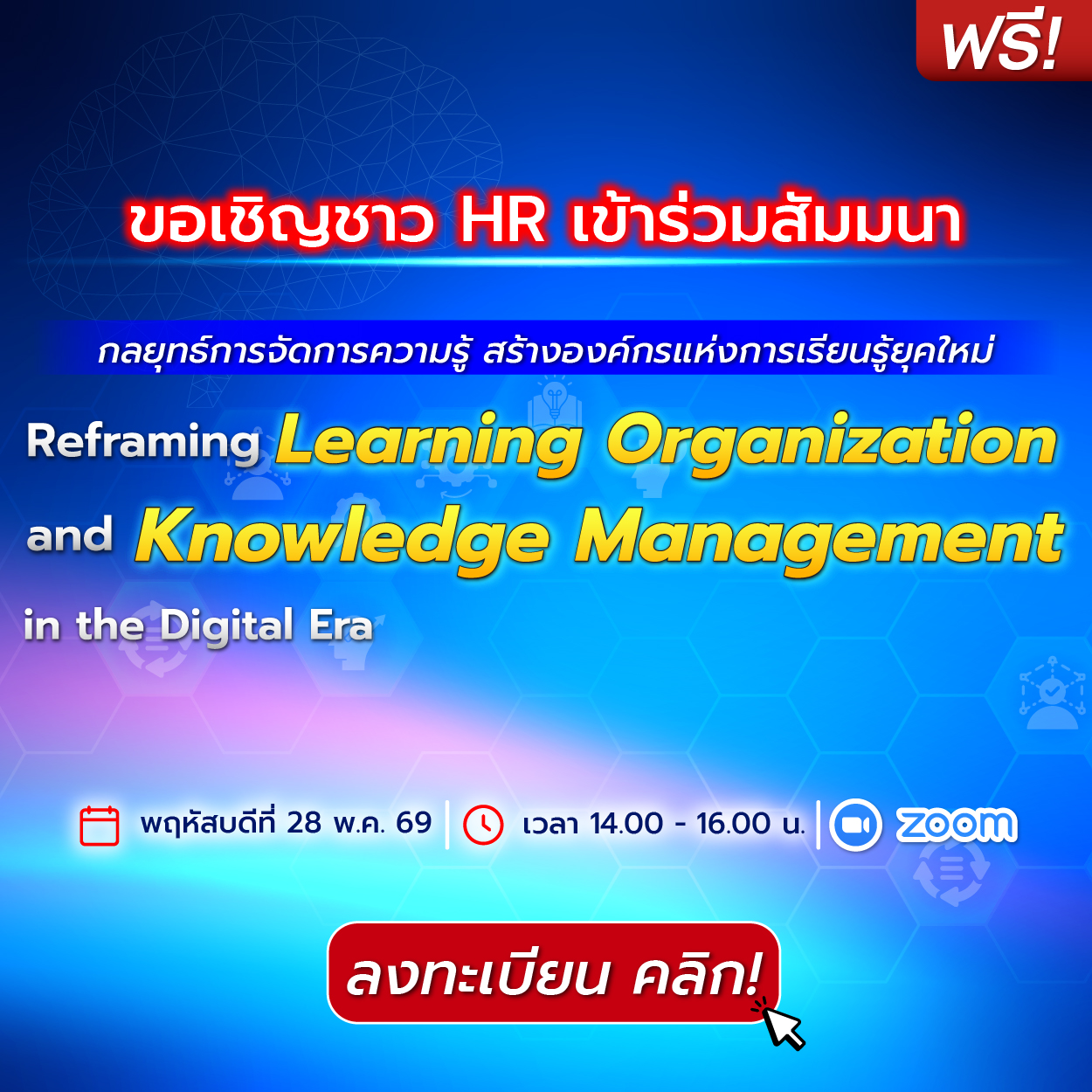 สัมมนาฟรี: กลยุทธ์การจัดการความรู้ สร้างองค์กรแห่งการเรียนรู้ยุคใหม่