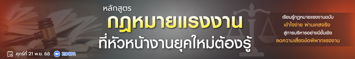 หลักสูตร : กฎหมายแรงงาน ที่หัวหน้างานยุคใหม่ต้องรู้
