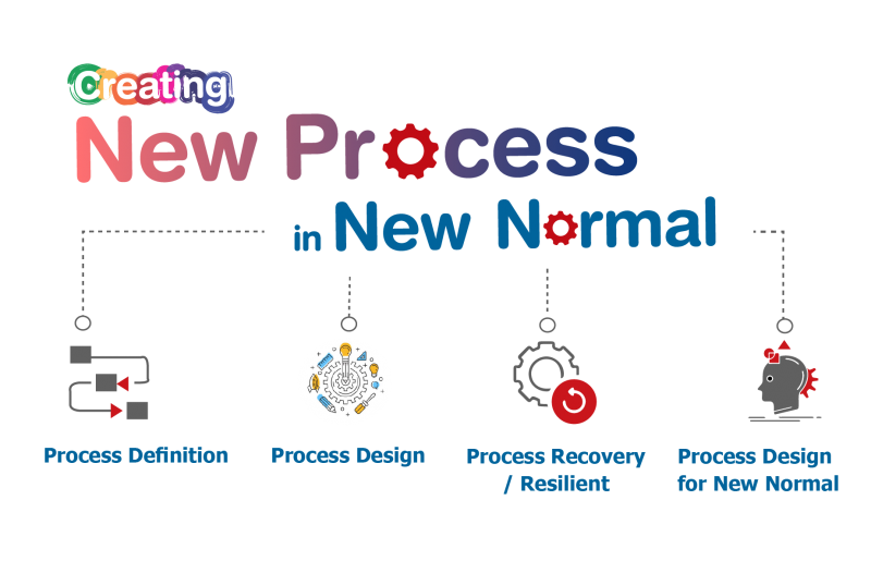ภายใต้ New Normal เราจะสังเกตได้อย่างชัดเจนเลยว่า ในองค์กรเราได้เกิดงานใหม่ กระบวนการใหม่ขึ้นอย่างมากมาย อาทิเช่น ร้านอาหารก็เกิดงานและกระบวนการที่จะต้อง Delivery นำส่งอาหารถึงมือลูกค้า หรือในธุรกิจต่างๆ ก็เกิดงานและกระบวนการผ่านดิจิตอลมากมาย ส่วนโรงงานหรือการผลิตก็เกิดงานและกระบวนการที่ต้องใช้เครื่องจักรและหุ่นยนต์เข้ามาแทนที่ คำถามที่สำคัญเราจะสร้างงานและกระบวนการใหม่ (New Process) นี้ อย่างเป็นระบบมีประสิทธิภาพและคุณค่าได้อย่างไร?
