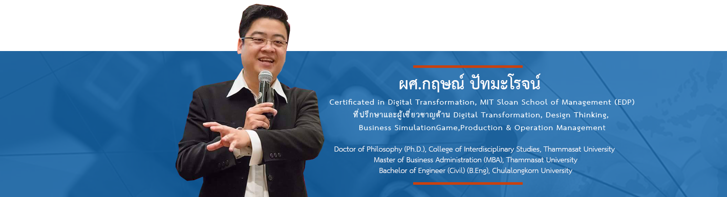 การเปลี่ยนแปลงของธุรกิจในปัจจุบันนั้นรวดเร็วและคาดไม่ถึง จากการเปลี่ยนแปลงของเทคโนโลยี ไม่ว่าจะเป็นอุปกรณ์ที่เชื่อมต่อระหว่างโลกของข้อมูลข่าวสารกับชีวิตจริง และอุปกรณ์เครื่องมือเครื่องจักรในการประกอบการที่สื่อสารกันได้เอง คอมพิวเตอร์และหุ่นยนต์ที่เรียนรู้และฉลาดขึ้นได้ด้วยตัวเอง ธุรกิจที่เรียนรู้เท่าทันสถานการณ์เหล่านี้ และสามารถปรับเปลี่ยนตัวเองได้เท่านั้นจึงจะอยู่รอดต่อไปได้ หลักสูตรนี้จะเปิดแนวทางให้ได้นำกลยุทธ์ดิจิทัลไปประยุกต์ใช้กับองค์กรได้อย่างเหมาะสมและทันท่วงที