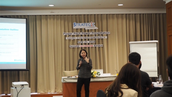 สำคัญกว่านั้นคือ "การ Pitch งานอย่างมีกลยุทธ์" ซึ่งจำเป็นต้องเข้าใจถึงสถานการณ์ ความต้องการของลูกค้า กลยุทธ์ของคู่แข่ง รวมถึงการเรียงลำดับของการนำเสนอแล้วทำการสื่อสารออกไปอย่างมีชั้นเชิง ด้วยหลักจิตวิทยาที่จะโน้มน้าวใจลูกค้าให้เกิดความคล้อยตามเชื่อมั่น และ อนุมัติงานที่นำเสนอในที่สุด ดังนั้น หลักสูตร "หลักการเสนองาน เพื่อให้ได้งาน (Power Pitch)" นี้ จึงเหมาะสำหรับผู้ที่ต้องขายโครงการ หรือนำเสนองาน Idea แก่ลูกค้า โดยเริ่มตั้งแต่การเตรียมตัวการนัดหมาย การวิเคราะห์ การเรียบเรียงข้อมูลอย่างเป็นลำดับ และทักษะในการนำเสนอ เพื่อสร้างภาพมุมมองทางความคิดของเราให้ลูกค้ามีความสนใจ เชื่อมั่น จนกระทั้งนำไปสู่การยอมรับโดยการอนุมัติในที่สุด