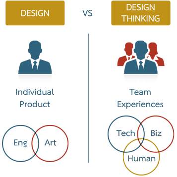 Design Thinking เป็นกระบวนการคิดเชิงออกแบบที่ประกอบด้วยการคิดเชิงสร้างสรรค์ และการคิดเชิงธุรกิจ นำไปสู่การสร้างสรรค์นวัตกรรมอย่างเป็นระบบ โดยหัวใจสำคัญคือตอบสนองความต้องการของลูกค้า (Human-Centered) ผ่านกระบวนการเรียนรู้จากลูกค้าโดยวิธีการต่างๆ และนำมาระดมความคิดเพื่อให้ได้แนวทางหรือนวัตกรรมที่ตอบโจทย์ในการแก้ปัญหาให้กับลูกค้า และการเรียนรู้และลงมือทำเพื่อสร้างคุณค่าและนวัตกรรม