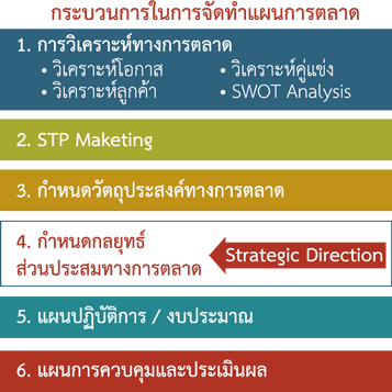 • การกำหนดกลยุทธ์ทางการตลาด และทางเลือกเชิงกลยุทธ์