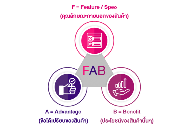 • FAB กับการนำเสนอสินค้าและบริการผ่านประโยชน์พื้นฐาน และ ประโยชน์ทางด้านอารมณ์