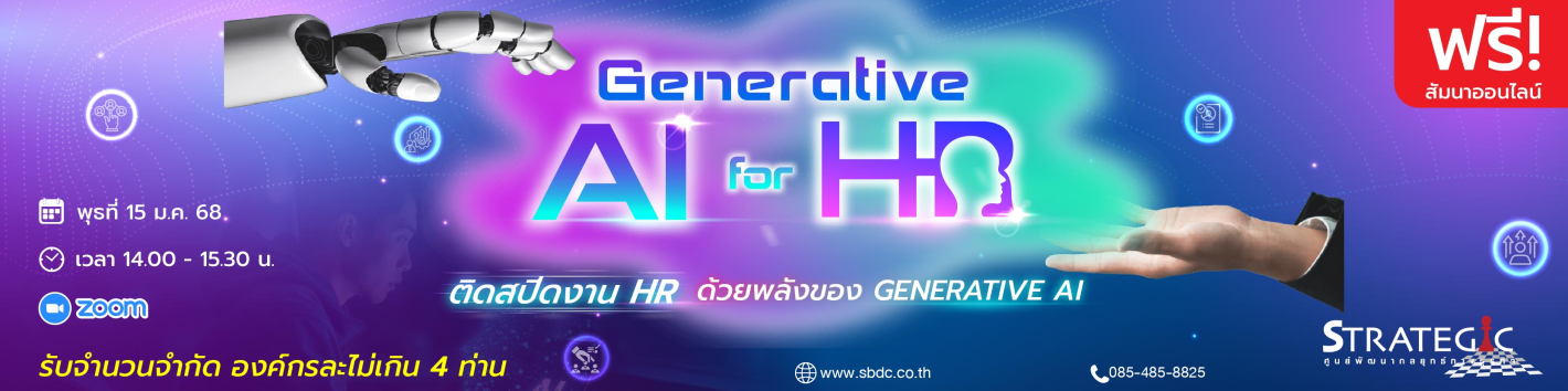 Strategic Center ขอเชิญร่วมงานสัมมนาเพื่อการพลิกโฉมงาน HR ให้ทันสมัยด้วย Generative AI – เทคโนโลยีที่ช่วยยกระดับประสิทธิภาพการทำงาน HR ของคุณให้รวดเร็ว ฉลาด และแม่นยำยิ่งขึ้น ด้วยการลดขั้นตอนที่ซับซ้อน ตอบโจทย์การทำงานที่หลากหลายในองค์กร